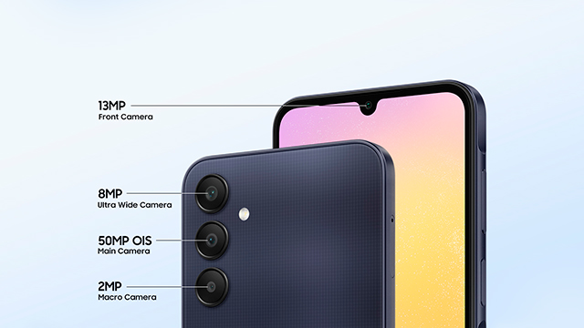 ¡Espero que no te importe convertirte en el fotógrafo oficial de tu grupo de amigos, porque a partir de ahora todos querrán que te encargues de captar los mejores recuerdos de cada fiesta! Gracias al amplio juego de lentes de Galaxy A25 5G, podrás capturar paisajes coloridos y selfies divertidísimos con una calidad extraordinaria. Dentro del sistema de cámaras de alta resolución, cabe destacar su sensor principal de 50 MP con estabilizador óptico de imagen (OIS) para que puedas obtener fotos nítidas incluso en movimiento. Dispones también de una cámara con gran angular de 5 MP, una cámara macro de 2 MP y una cámara frontal de 13 MP. ¡Las posibilidades son casi infinitas!